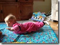 Thursday we got lots of work done in the office (sparkly bow and all), then we spent a few hours in the kitchen – we continued with the green veggies for Tessie so we prepared peas and broccoli for Tessie, and an amazing chicken pot pie for Steve and I. Even though both Steve and I are completely grossed out by peas, we gave Tessie a big smile when we forced them on her. While she noticed that the taste was not as bland as the rice cereal, she didn’t object.